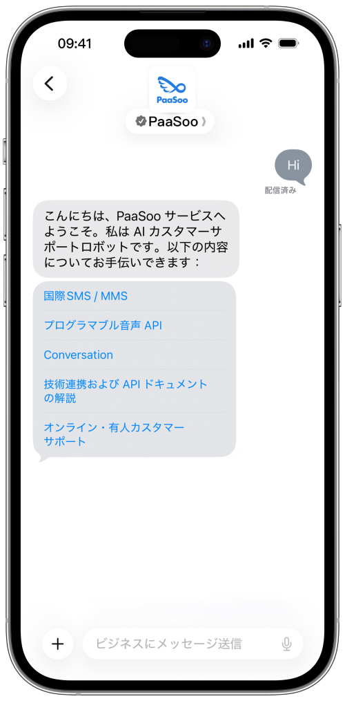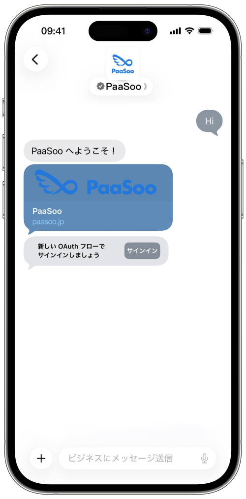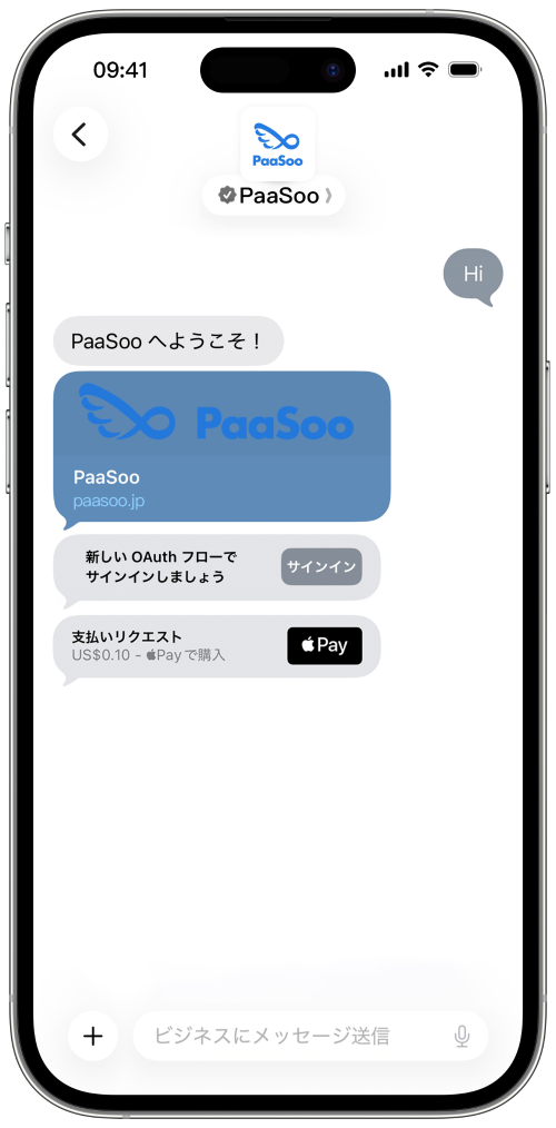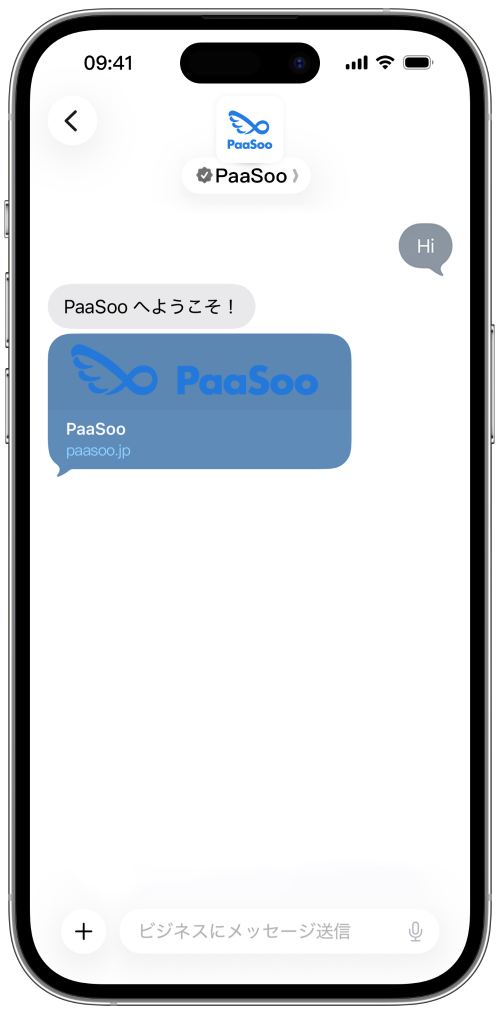 すべての Apple デバイスに標準搭載されているメッセージアプリで、あなたのブランドを「見つけやすく」「つながりやすく」しましょう。