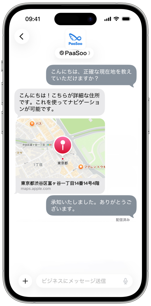 ユーザーが Apple マップのプレイスカードから貴社を見つけ、直接会話を開始できるようにします。