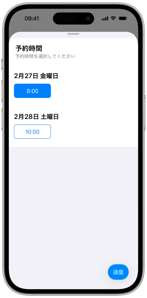 リストピッカーとタイムピッカーを組み合わせて、以下の操作をユーザーに提供します: